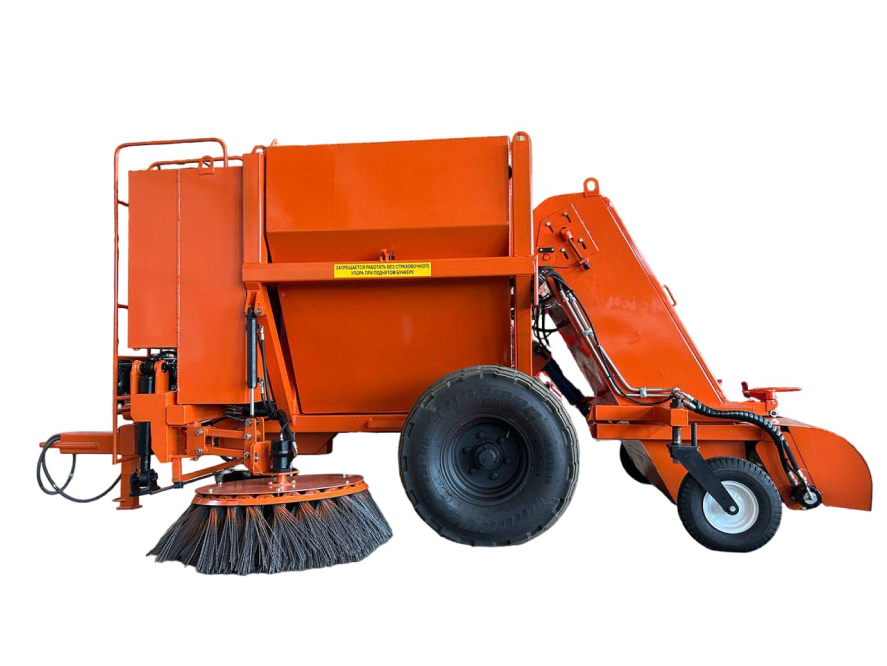 Машина подметальная (оборудование прицепное) к трактору МТЗ-80/82 предназначена для механизации уборочных работ в городских жилищно-коммунальных хозяйствах при очистке улиц, дорог, площадей и других территорий от: пыли, опавших листьев, городского мусора. При этом загрязняющие предметы собираются в бункере с последующей выгрузкой собранного в кузов автомобиля или прицеп. Наличие трех щеток, цилиндрической и двух лотковых, позволяет осуществлять уборку мусора на проезжей части, ограниченной бордюром. Машина снабжена системой увлажнения для предотвращения пылеобразования.