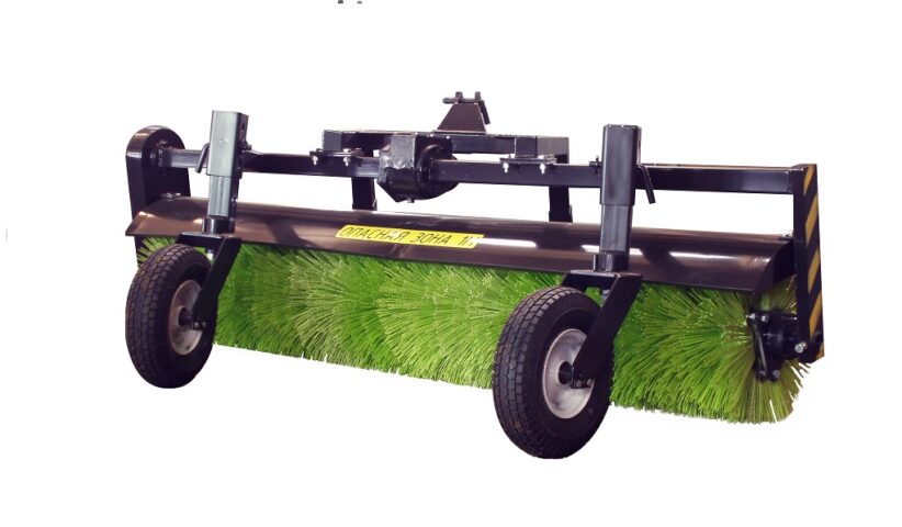 Данное оборудование имеет опорные колёса (в количестве 2-х штук) и является быстро заменяемым, а монтируется оно на трактор с задней стороны. В данном случае, для пользователя важна ширина охватываемой рабочей зоны и максимальная скорость движения транспорта в режиме подметания.