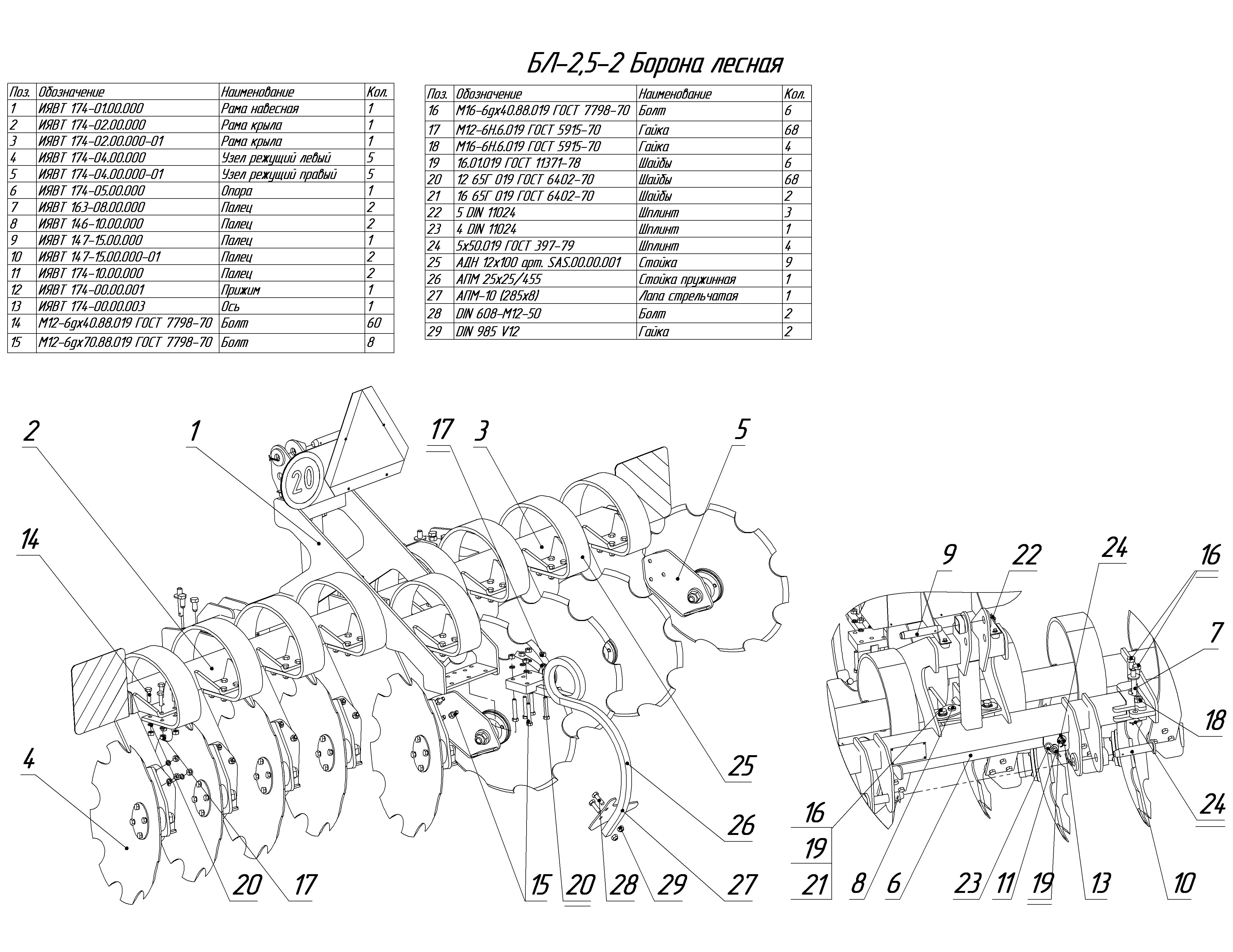 ЗАПАСНЫЕ ЧАСТИ К БОРОНЕ ЛЕСНОЙ БЛ-2,5-2