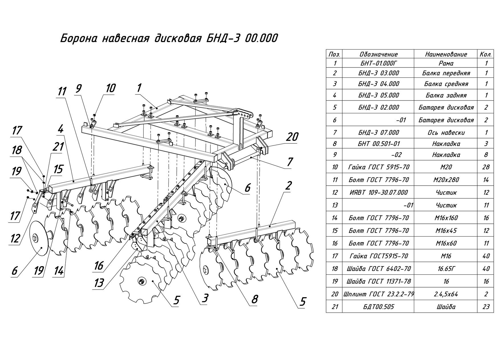 ЗАПАСНЫЕ ЧАСТИ К БОРОНЕ НАВЕСНОЙ ДИСКОВОЙ БНД-3