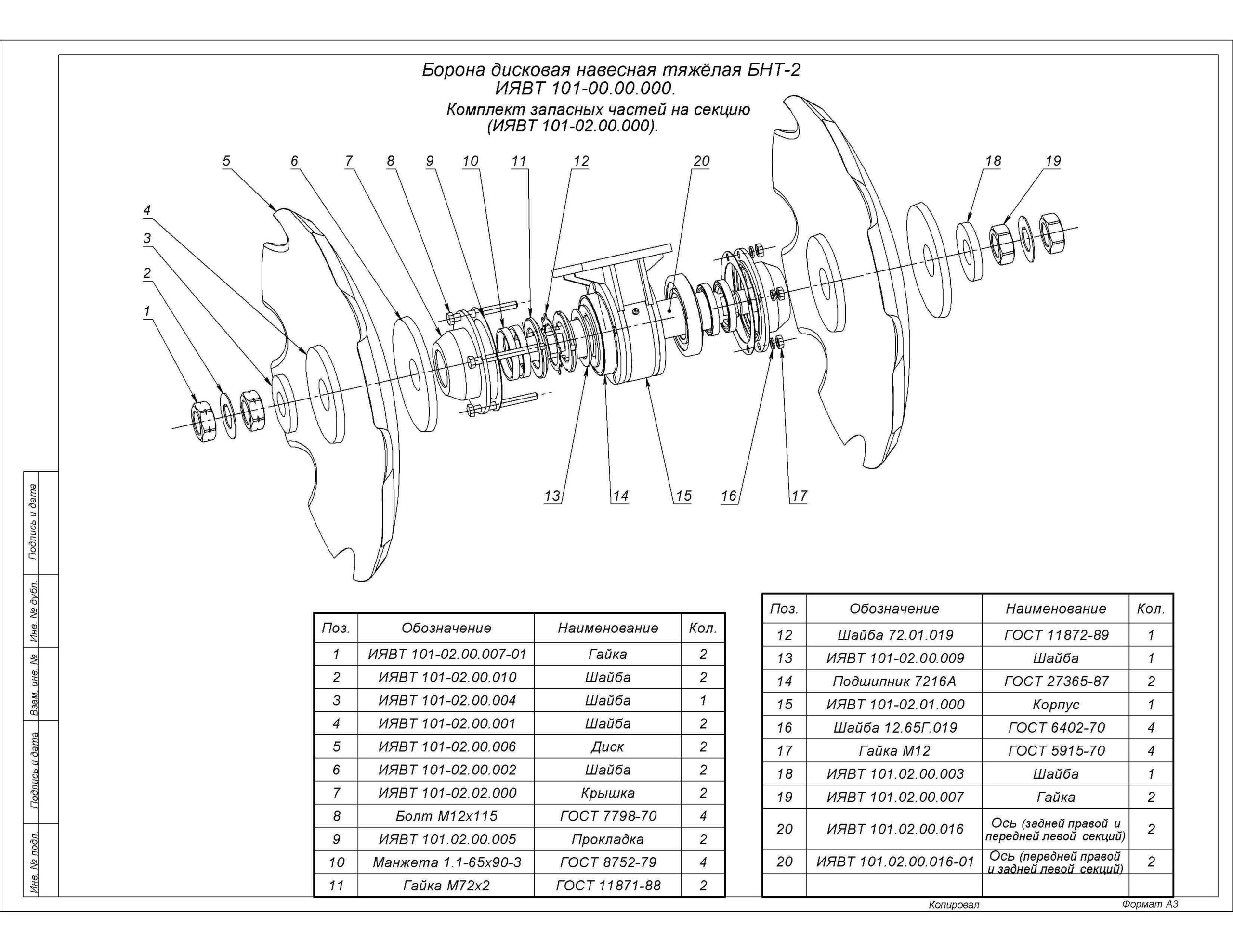 ЗАПАСНЫЕ ЧАСТИ К НАВЕСНОЙ ДИСКОВОЙ ТЯЖЕЛОЙ БОРОНЕ БНТ-2