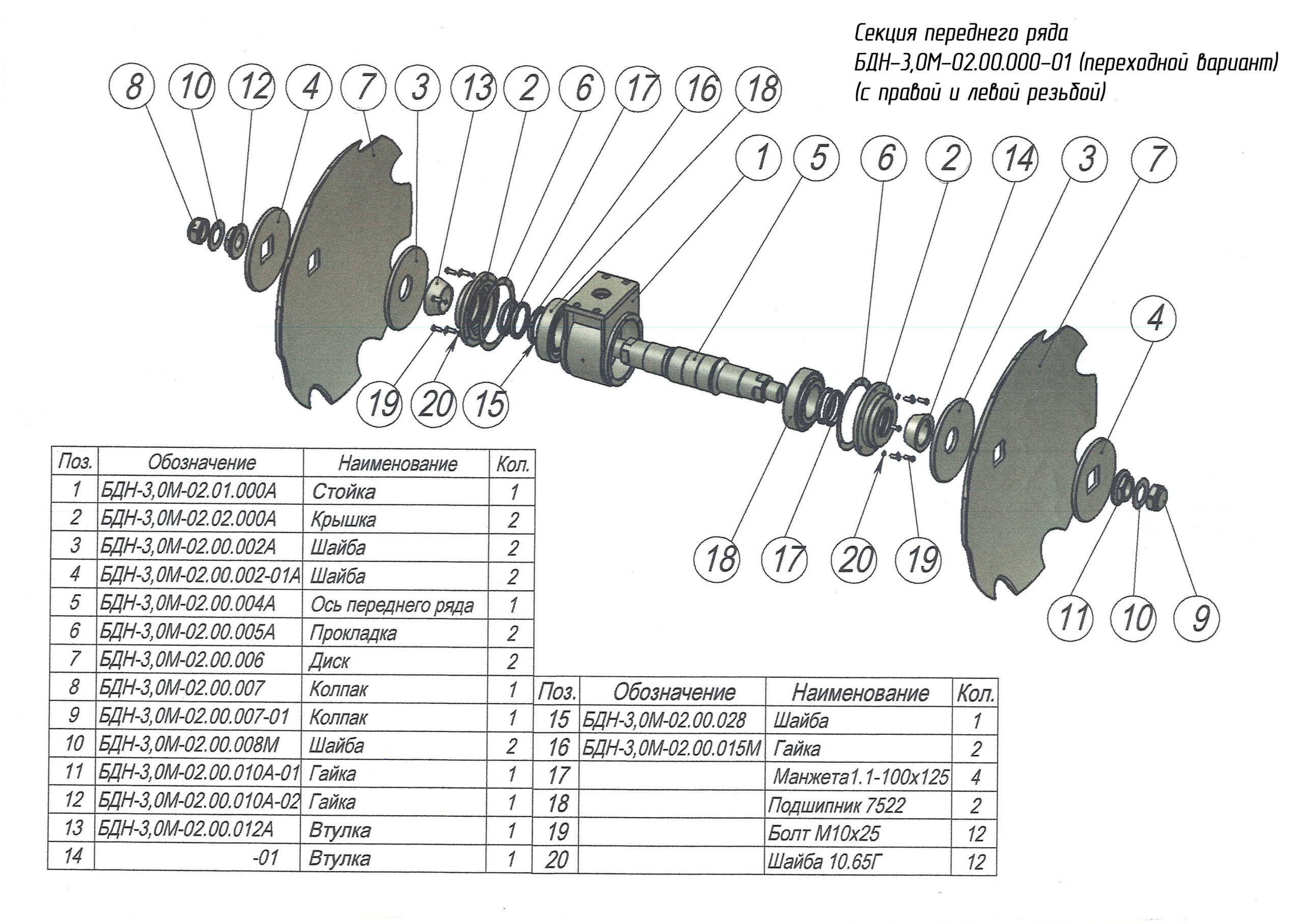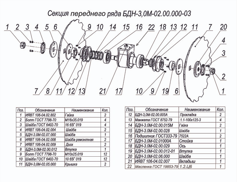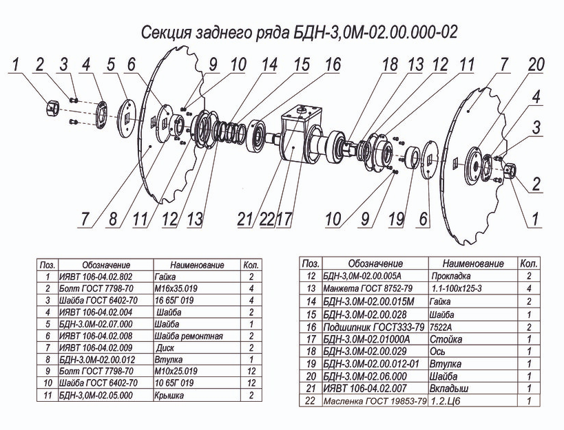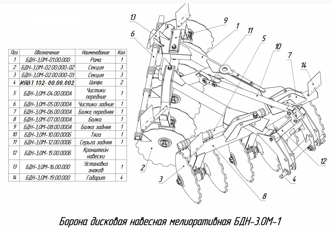 ЗАПЧАСТИ К БОРОНЕ НАВЕСНОЙ ДИСКОВОЙ МЕЛИОРАТИВНОЙ БДН-3,0М