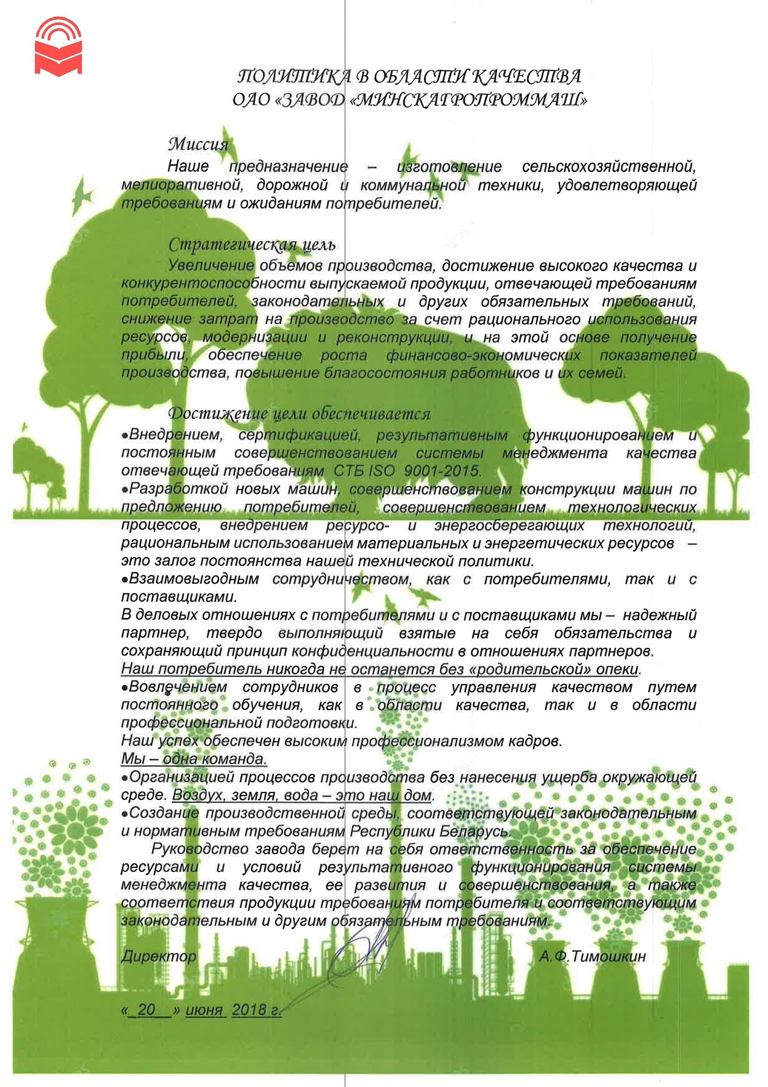 ОАО «ЗАВОД МИНСКАГРОПРОММАШ» – это специализированное предприятие Республики Беларусь по производству почвообрабатывающих агрегатов и коммунальной техники.